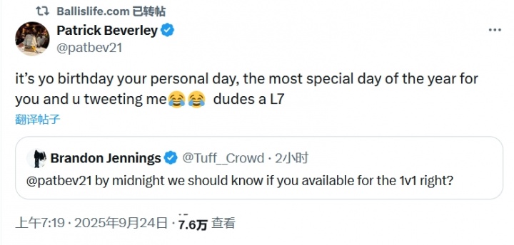 今日,詹寧斯甚至直接發推約戰貝弗利:“今晚就該知道你敢不敢和我單挑了吧?”