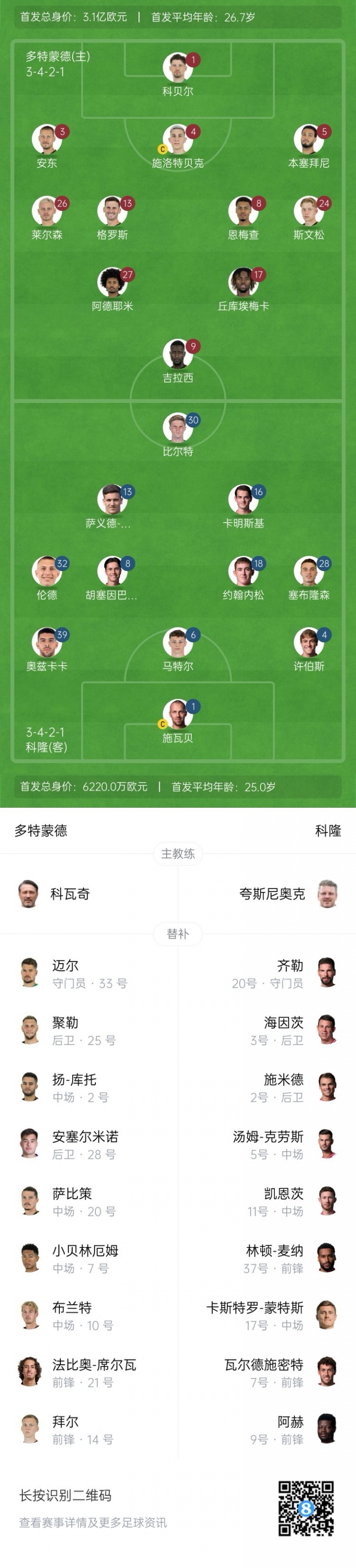 10月25日訊 德甲第8輪,多特主場迎戰科隆比賽即將打響。賽前首發出爐。