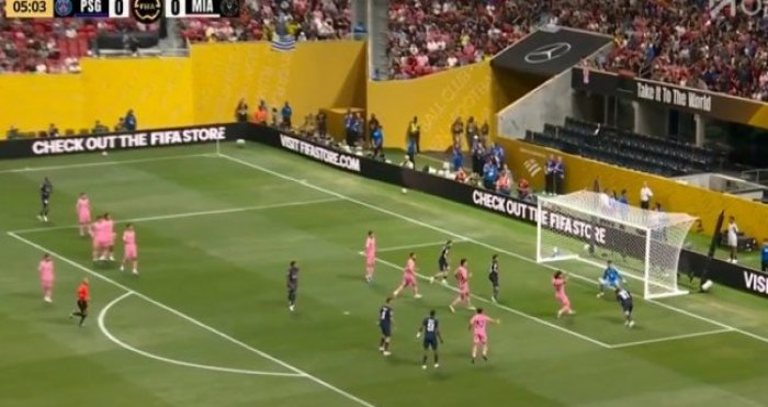 杜埃造阿維萊斯烏龍!第45分鐘,杜埃右路下底傳中,皮球打在阿維萊斯身上折射,隨后飛進自家大門,巴黎圣日耳曼3-0邁阿密國際!↓