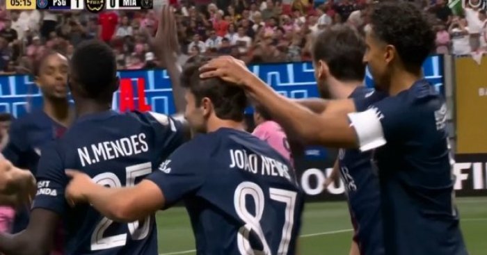巴黎領(lǐng)先!若奧-內(nèi)維斯破門,維蒂尼亞助攻!第6分鐘,維蒂尼亞主罰任意球開出到后點,若奧-內(nèi)維斯頭球沖頂破門,巴黎圣日耳曼1-0邁阿密國際!↓
