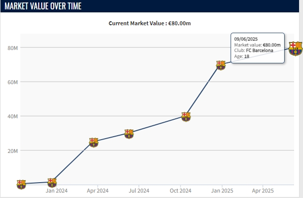 庫巴西出自于巴薩青訓,2023年從青年隊進入巴薩一線隊時,他的身價只有150萬歐。但兩年間他得到了長足的進步,展現了充分的潛力,身價已經暴漲到如今的8000萬歐。