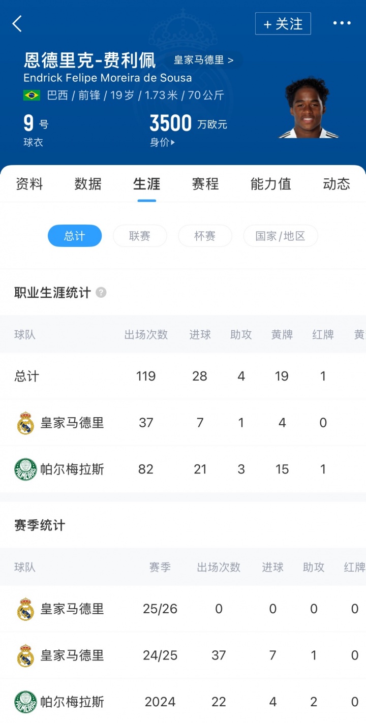 即使是對陣萊萬特和凱拉特的比賽,恩德里克仍坐在替補席,即便球隊有巨大領先優勢,他甚至都沒有獲得熱身機會。恩德里克夢想著跟隨巴西參加2026世界杯,但缺乏出場時間可能會讓他與國家隊大名單漸行漸遠。最近一期巴西隊名單,恩德里克則再次落選。