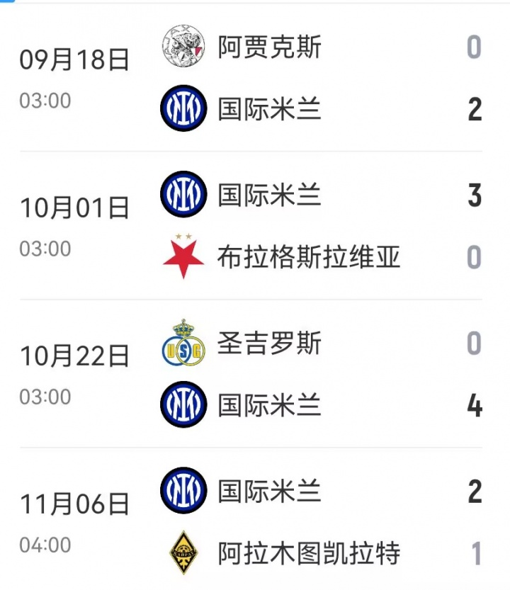 11月06日訊 歐冠第4輪,國米主場2-1戰勝凱拉特,本賽季歐冠已豪取4連勝,與拜仁、阿森納共同成為本賽季歐冠至今唯三的全勝球隊。