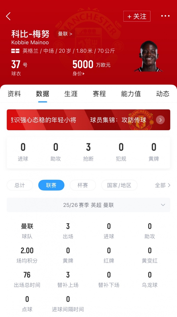 值得一提的是,據此前羅馬諾等多家媒體消息,梅努在今夏因擔憂出場時間曾申請租借離隊,但曼聯拒絕了這一提議。這名20歲的中場小將目前德轉身價5000萬歐元。本賽季英超出場三次全部為替補,且總計時長僅為76分鐘。