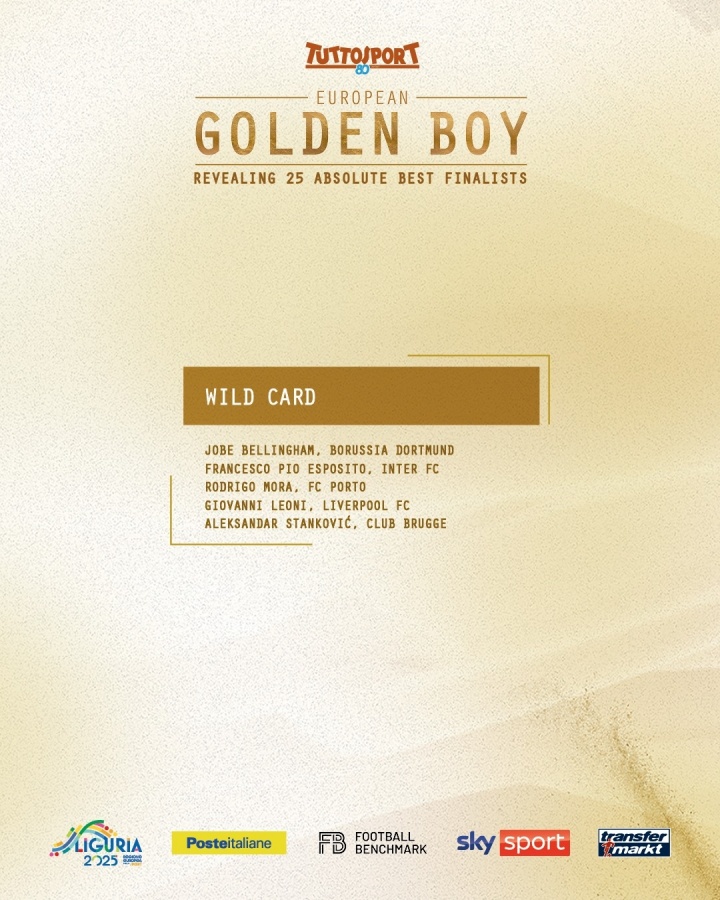 10月15日訊 金童獎公布25人候選,庫巴西、杜埃、懷森、斯凱利、居萊爾、小貝林厄姆在列。