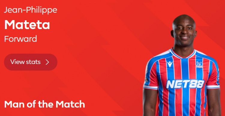 本場比賽水晶宮前鋒馬特塔上演帽子戲法,賽后他也當(dāng)選英超官方球迷票選全場最佳球員。