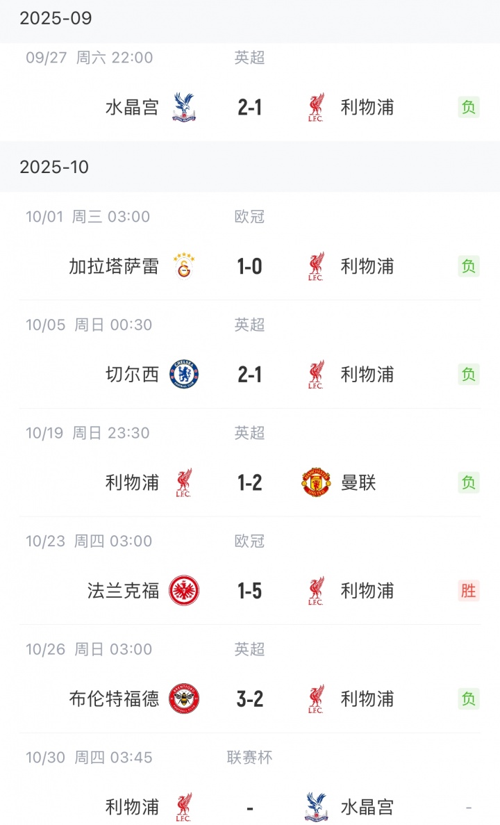利物浦近期戰績...給人看死了